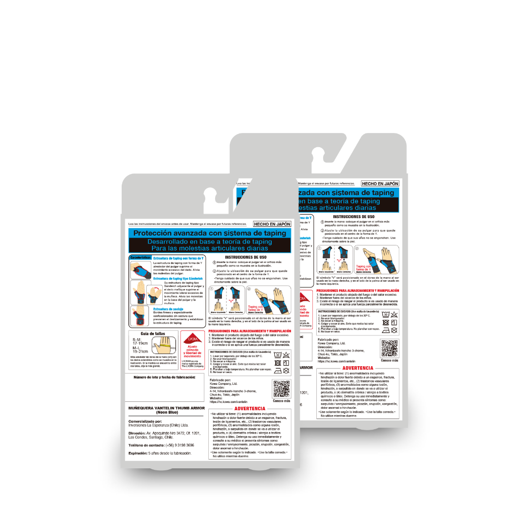 El Pack Doble Thumb Armor Azul VANTELIN está pensado para quienes buscan proteger ambas muñecas y pulgares, llevar una extra de repuesto o para compartir. Además, la muñequera Thumb Amor está diseñada para brindar soporte articulatorio avanzado en actividades cotidianas o deportivas, gracias a su estructura de taping inspirada en el vendaje terapéutico con calidad japonesa. Este producto no solo alivia molestias, sino que también ayuda a prevenir lesiones, proporcionando un balance óptimo entre compresión, estabilidad y flexibilidad.