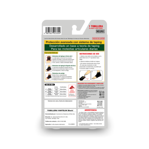 La Tobillera VANTELIN está diseñada para brindar soporte articulatorio avanzado en actividades cotidianas o deportivas, gracias a su estructura de taping inspirada en el vendaje terapéutico con calidad japonesa. Este producto no solo alivia molestias, sino que también ayuda a prevenir lesiones, proporcionando un balance óptimo entre compresión, estabilidad y flexibilidad.